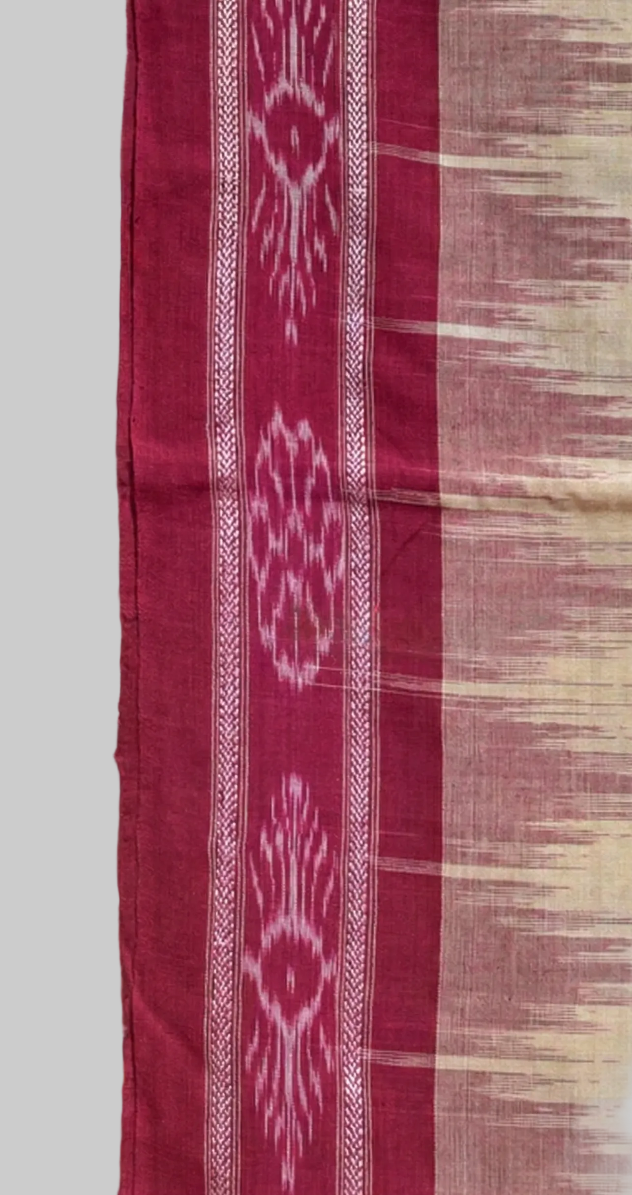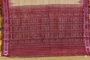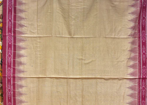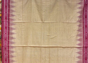Authentic Odisha Khandua Cotton Saree - Cream Body with Maroon Flower Border and Ikat Pallu