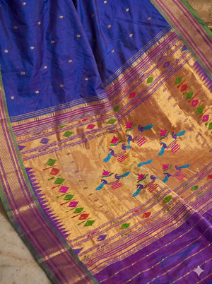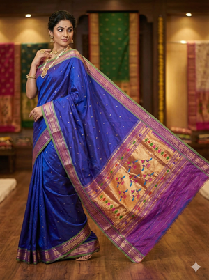 Handloom Authentic Blue Paithani Saree – Peacock Motif Pallu