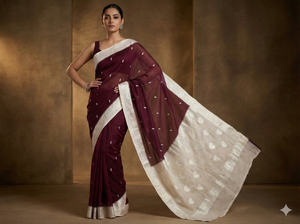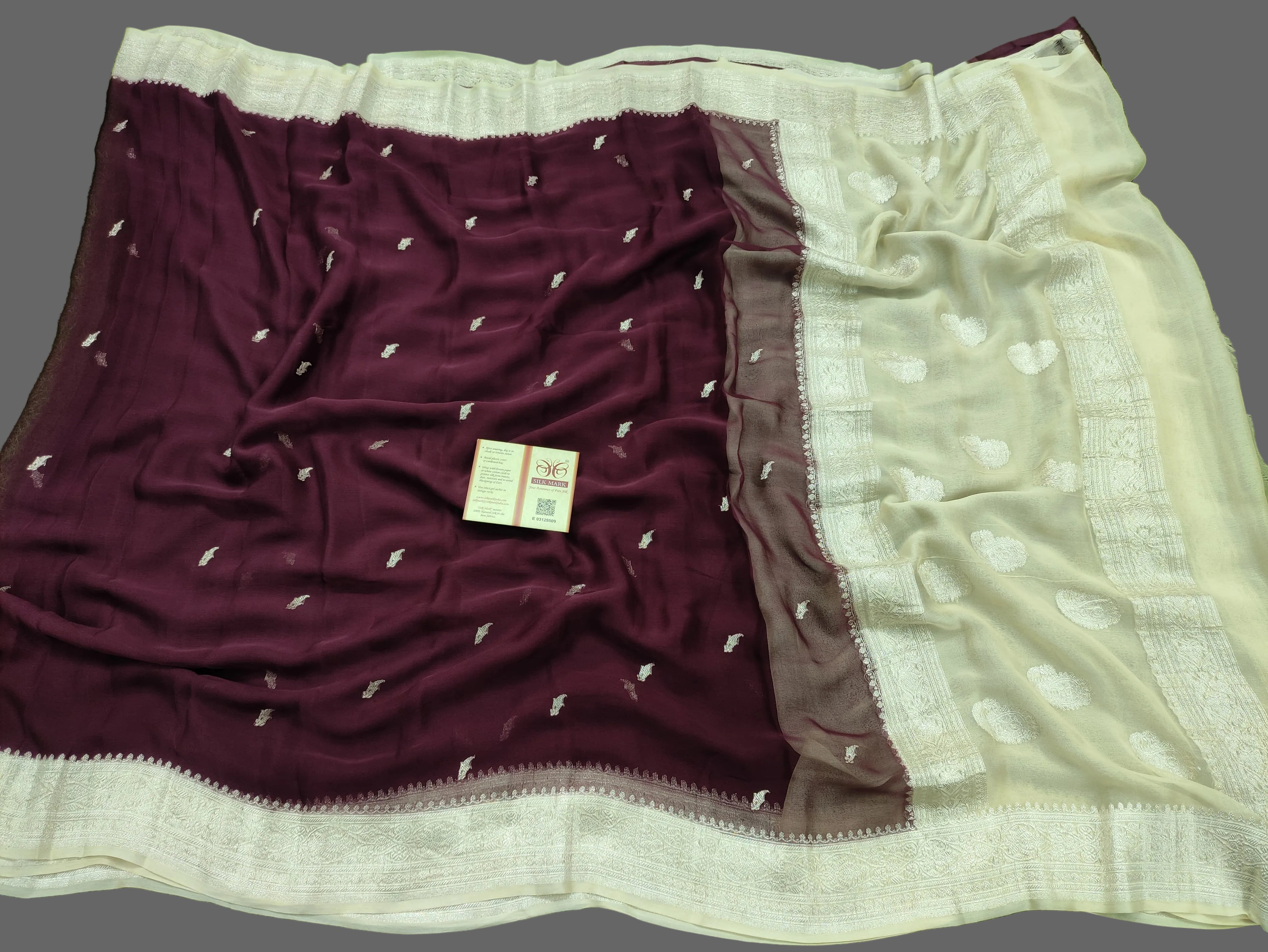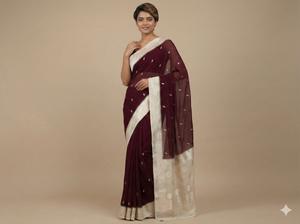 khaddi Chiffon Mysore Silk Sheer deep wine/maroon Saree – Handcrafted Elegance