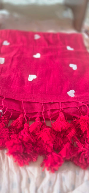 Red Embroidered Mul Coton Saree with Red Tassels | Corporate Babe Wear