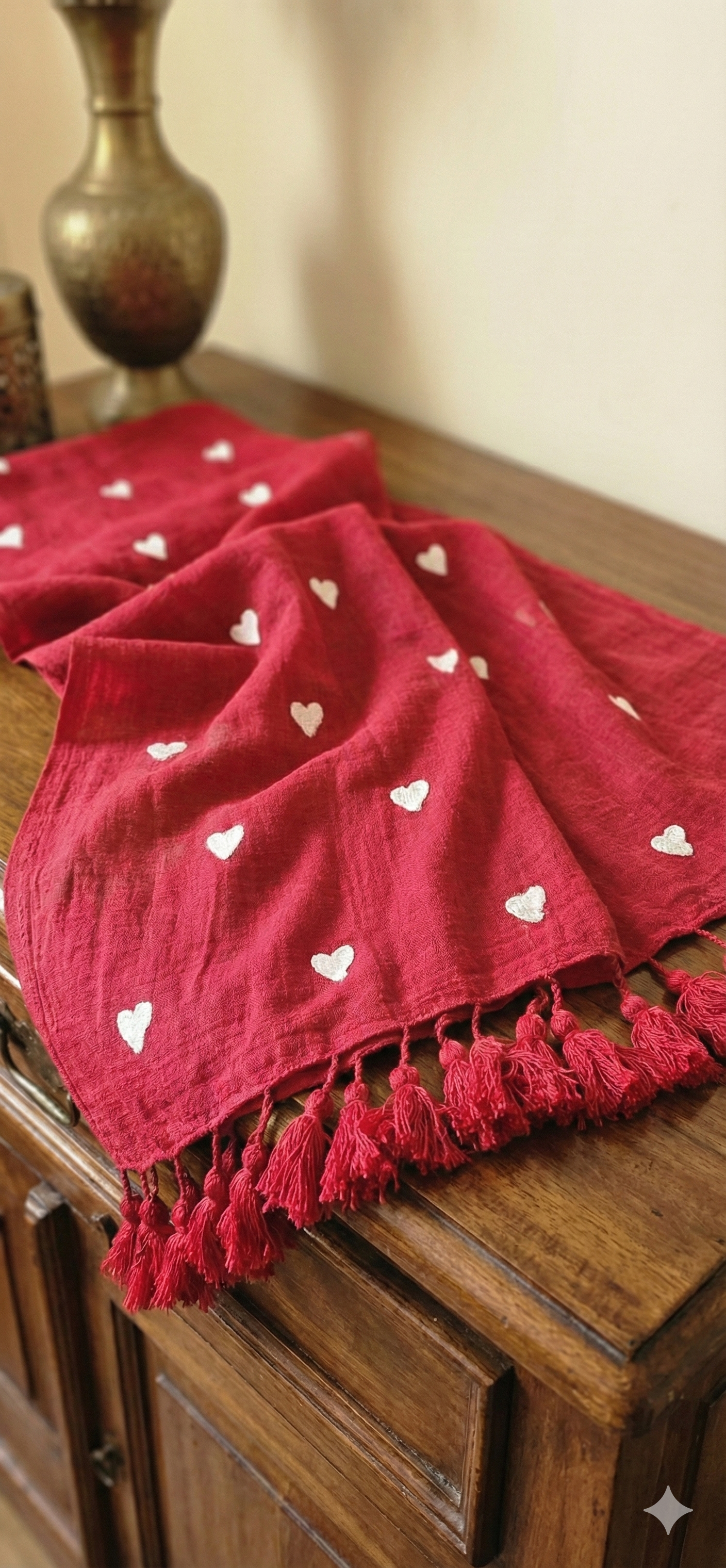 Border: Features a neatly finished edge with hand‑tied tassels that add volume, charm, and a festive appeal.