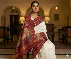 Patola sarees are one of India’s most exquisite and ancient handwoven textiles, originating from Patan, Gujarat. They are famous for their intricate geometric and floral patterns, vibrant colors, and the unique double ikat weaving technique, which is extremely rare and labor-intensive.