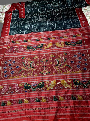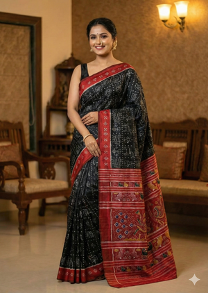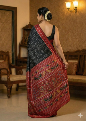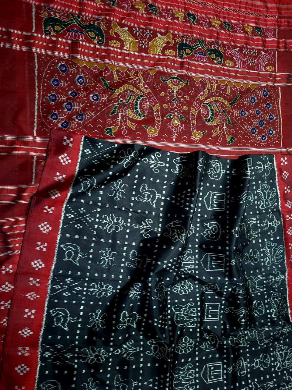 EXCLUSIVE Odisha Khandua Mulberry Silk | Heavy 4‑Ply Black Saree with Peacock Border & Pallu
