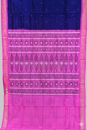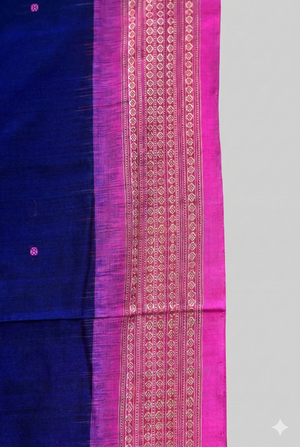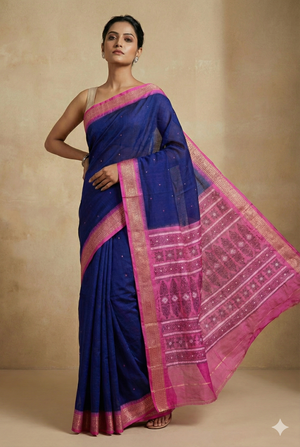 Bomkai Cotton Saree in Royal Blue & Pink | Authentic Odisha Handloom Saree