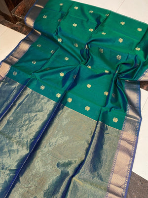 Handloom Authentic Teal Green Maheshwari Silk Cotton Saree directly from weaver