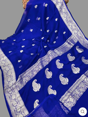 khaddi Chiffon Mysore Silk blue Saree – Handcrafted Elegance