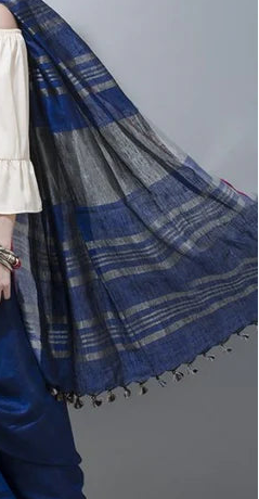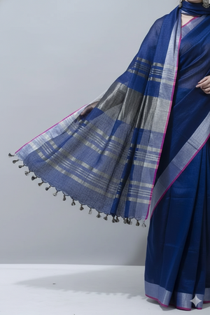 Pure Linen Saree in Imperial Blue with Silver Zari Border | Breathable Office Wear Saree
