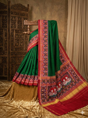 Patola sarees are one of India’s most exquisite and ancient handwoven textiles, originating from Patan, Gujarat. They are famous for their intricate geometric and floral patterns, vibrant colors, and the unique double ikat weaving technique, which is extremely rare and labor-intensive.