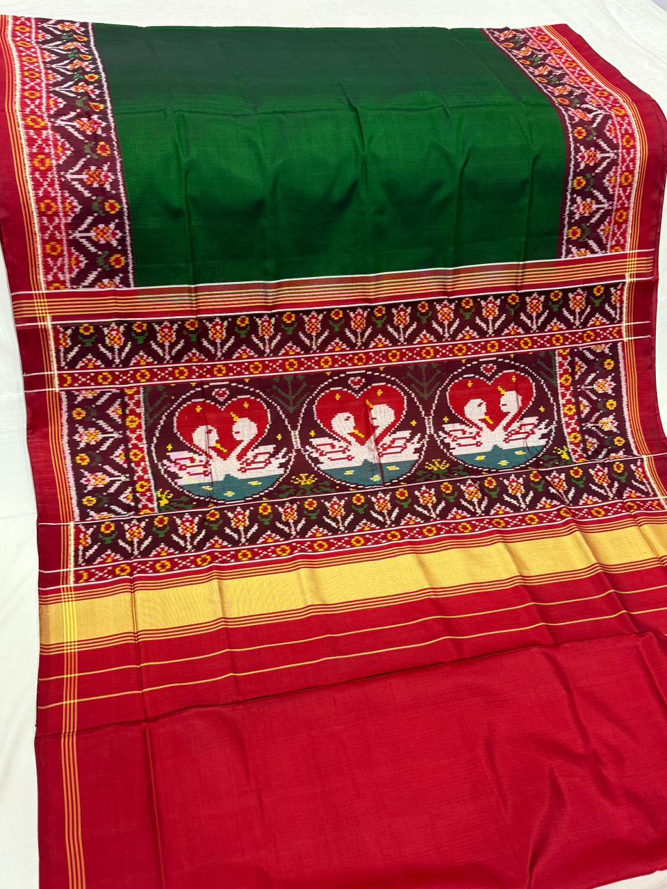 Green and Red Single Ikat Patola with Swan Motifs