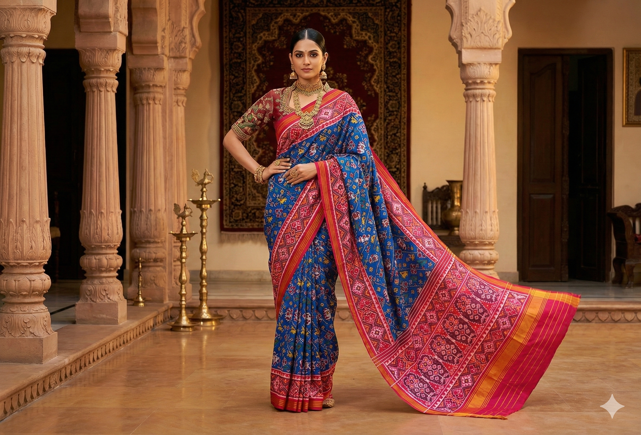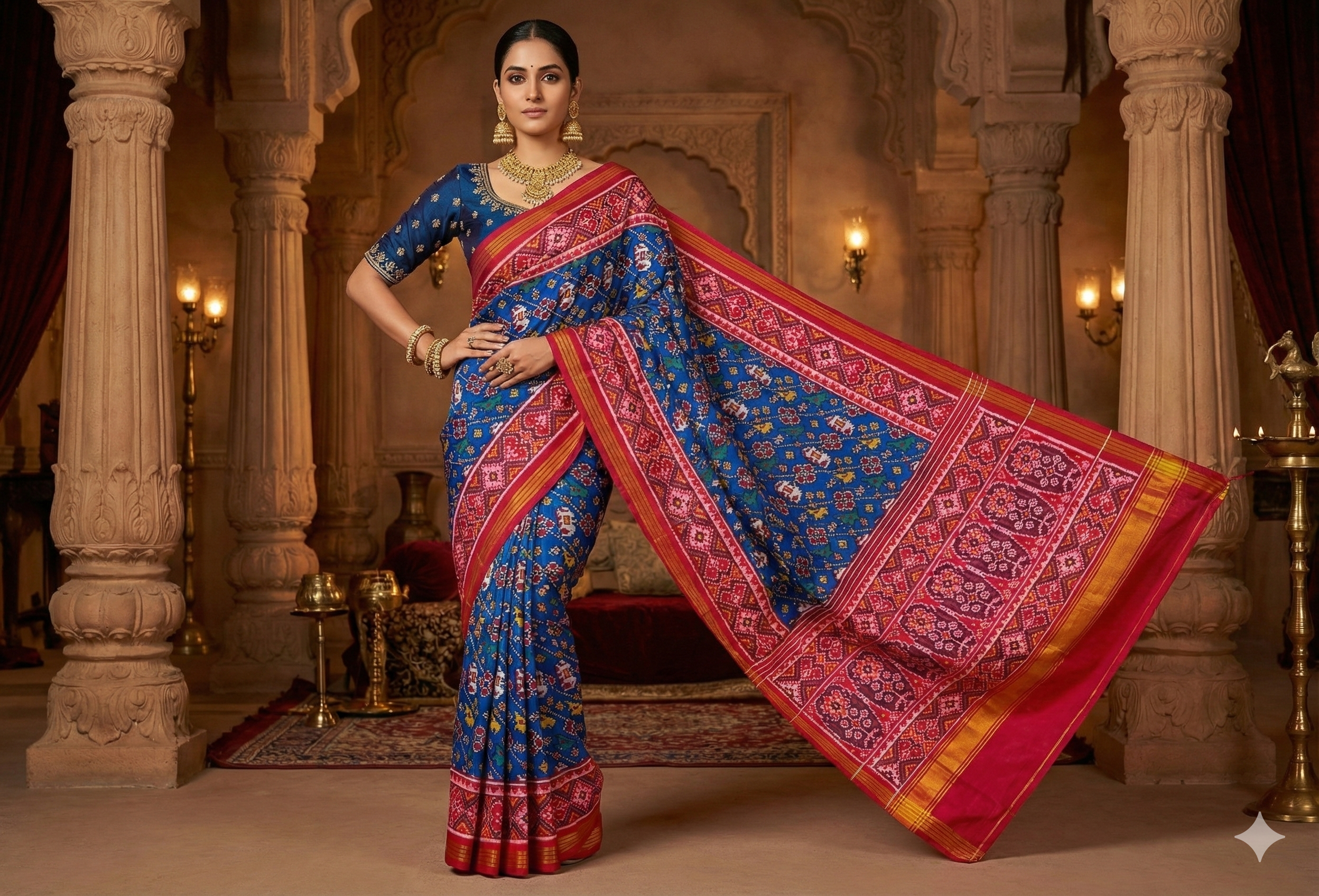 - Origin: Patola weaving dates back over 900 years. It was patronized by the Solanki dynasty in Gujarat and worn by royalty and aristocrats.