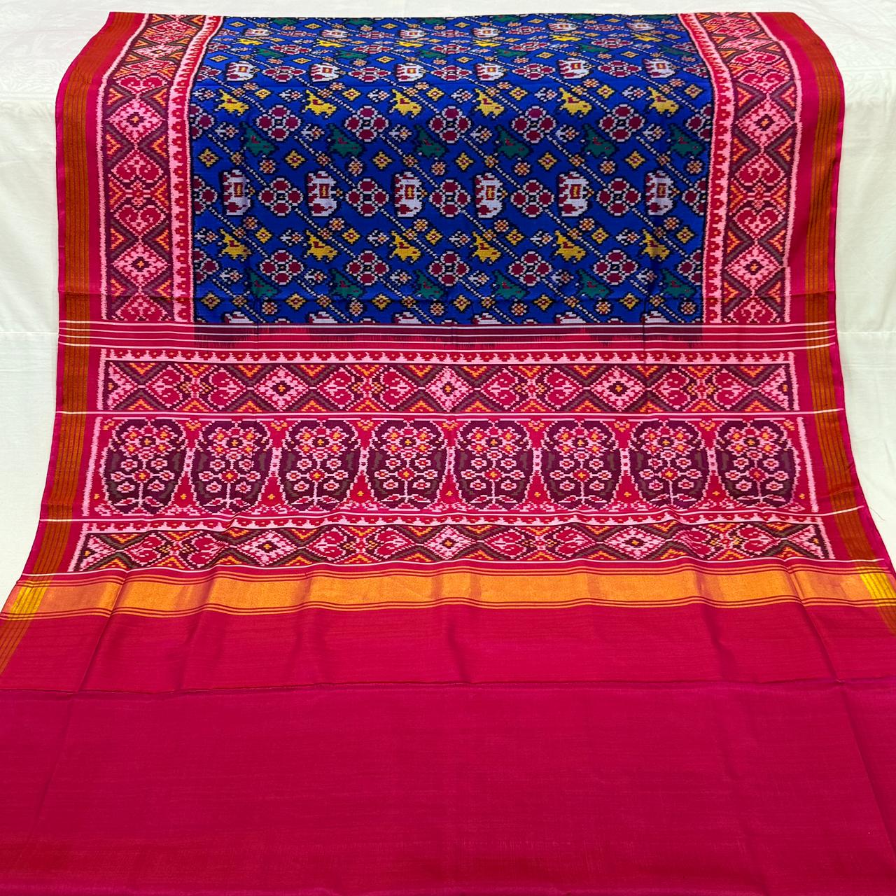 Royal Blue & Magenta - Authentic Patola Silk Saree with Intricate Single Ikat Pattern